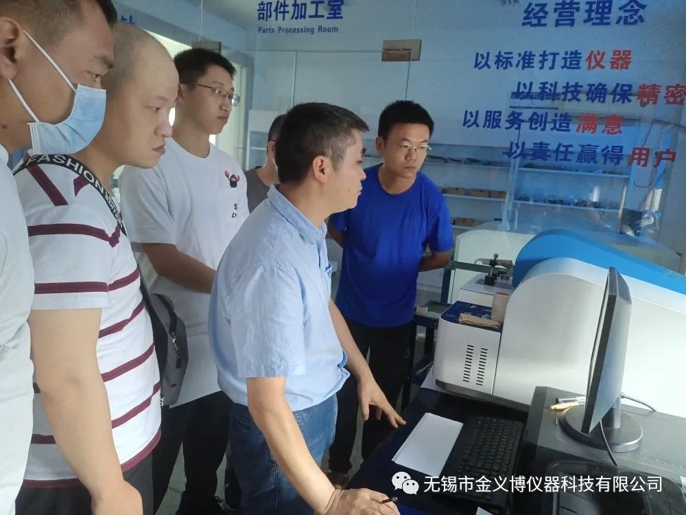 實訓期間,金義博檢測公司總經理韋秀兵和金義博儀器公司主任葉春暉帶領著江蘇省理化人員資格培訓班的學員們參觀了金義博儀器科技有限公司的全線產品,接著帶領學員參觀了我公司的光譜儀、檢測中心以及紅外碳硫車間,對相關的產品、技術等進行了詳細的了解和實踐。